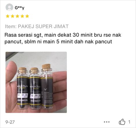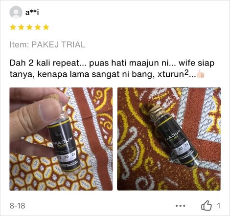 1 maajun sangat kuat, gunakan 1 biji untuk tahan 3 hari
